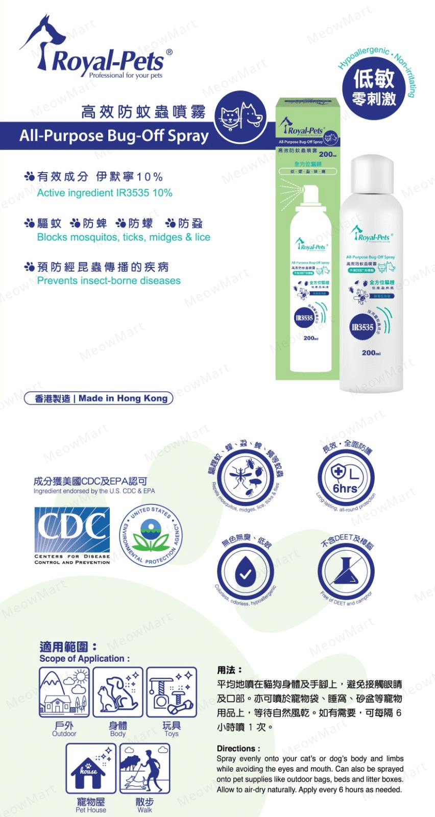 - 有效驅趕蚊、蠓、蝨、蜱、蠅