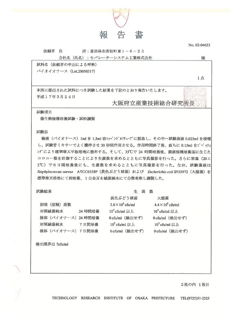 🔹 日本大阪府立產業技術研究所認證