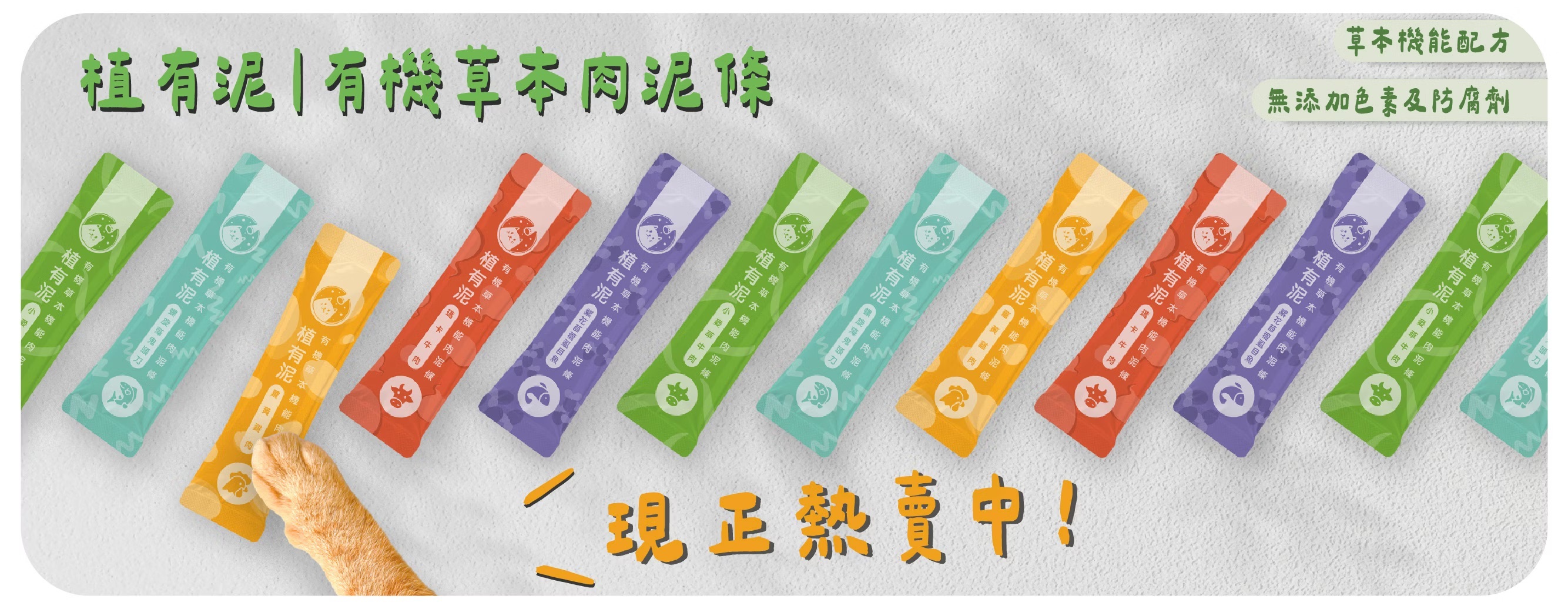 台灣【呼嚕喵HuluMeow】植有泥|有機草本機能肉泥條 (瑪卡牛肉) 18g x 4本 *貓狗適用*