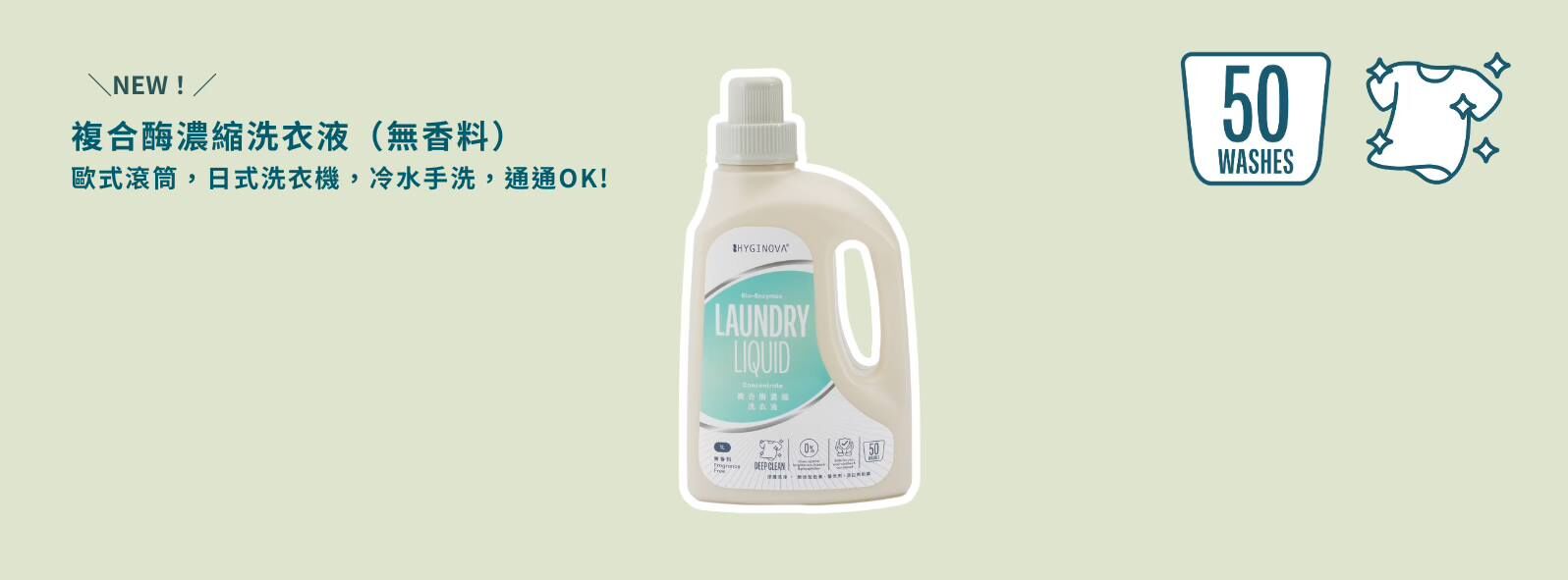 Hyginova 複合酶濃縮洗衣液 1L7種活性酶合作「吃掉」頑固污漬