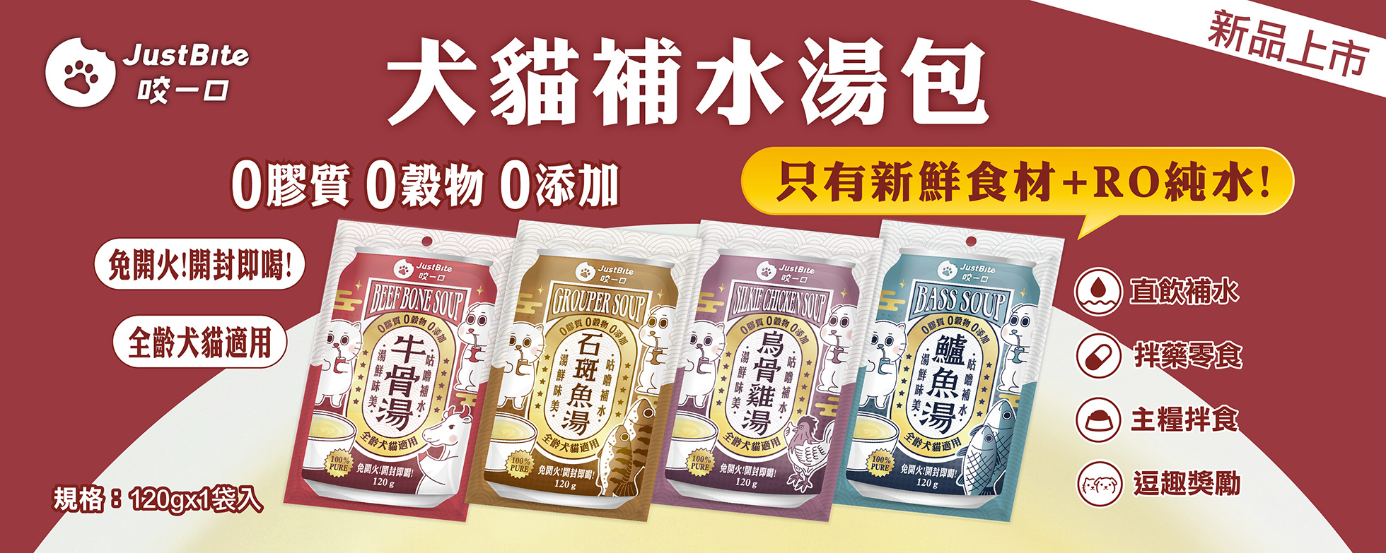 至2025-11-30T16:00:00.000+00:00截止 指定商品,【$𝟏𝟎𝟎任選𝟒包】台灣 𝐉𝐮𝐬𝐭𝐁𝐢𝐭𝐞 咬一口|寵物補水湯包 (售完即止)