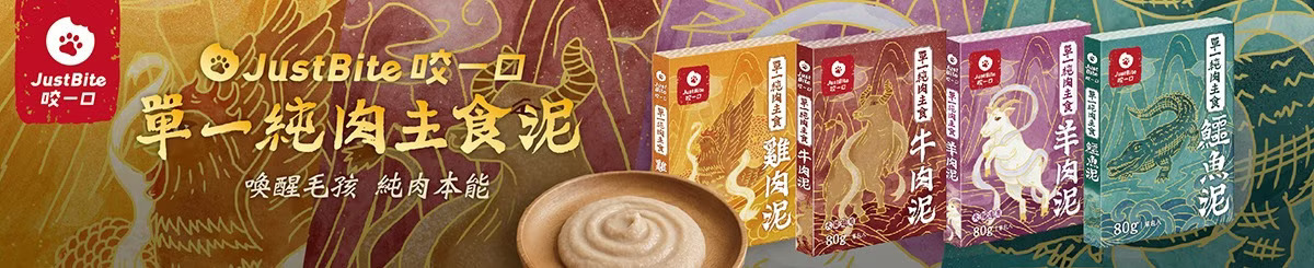 JustBite咬一口|單一純肉主食雞肉泥 80g (貓狗食用)雞肉、純水、雞肝、雞油、雞心、綜合營養粉、乳酸鈣、蒟蒻、蛋黃粉、洋車前子粉、酵母粉、胺基酸綜合酵母B群、綜合維生素、綜合礦物質、牛磺酸