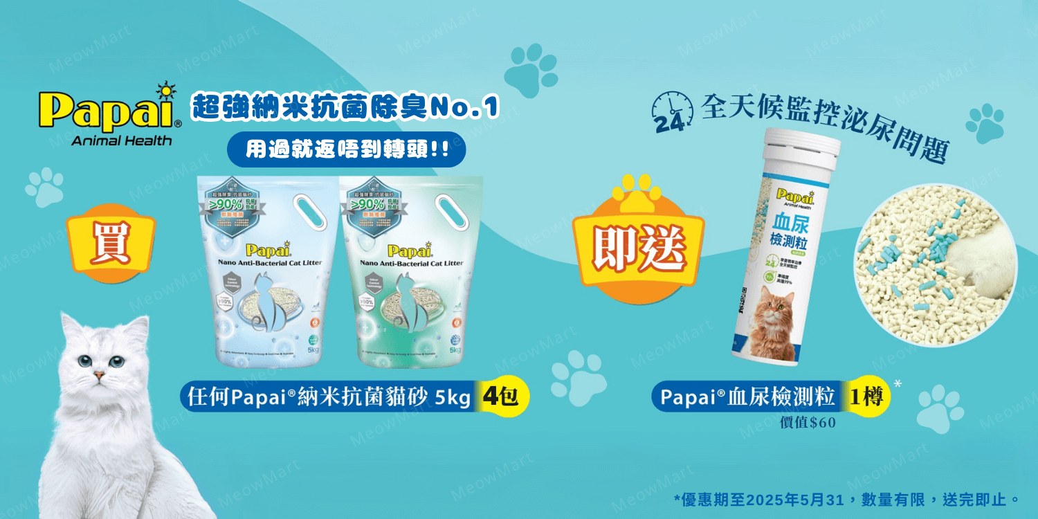 【期間限定】購買任何Papai®貓砂5kg 4包